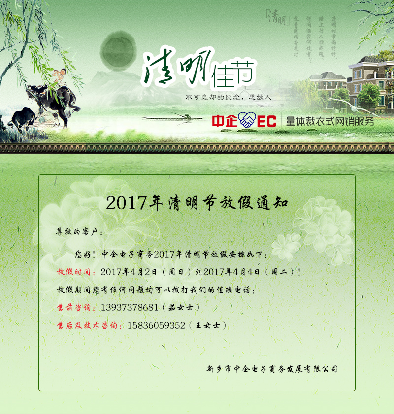 2017年清明節(jié)放假通知 更新時間:2017-04-01點擊次數(shù):5001次