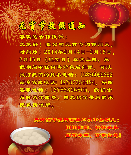 2014年元宵節(jié)放假通知 更新時間:2014-08-21點擊次數(shù):5483次
