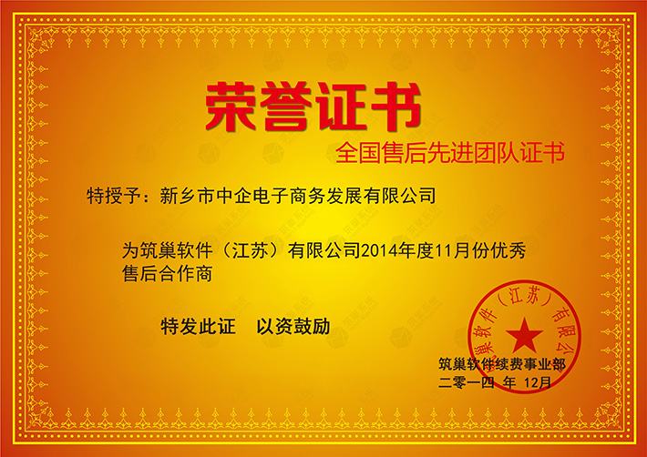 恭喜我公司成為北方大區(qū)11月份筑巢體系優(yōu)秀售后服務(wù)商 更新時間:2014-12-13點(diǎn)擊次數(shù):4889次
