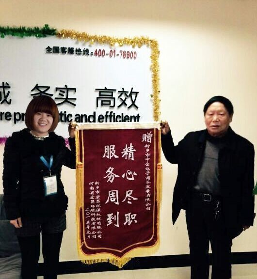 2015年1月26日,河南新鄉(xiāng)市宏昌環(huán)保機械有限公司勒總趨車前來公司,親手把一面錦旗送到了客服專員茹麗麗的手中,上面織著八個醒目的大字“精心盡職,服務周到”。一面錦旗從客戶的心目中首肯了中企客服的周到服務。